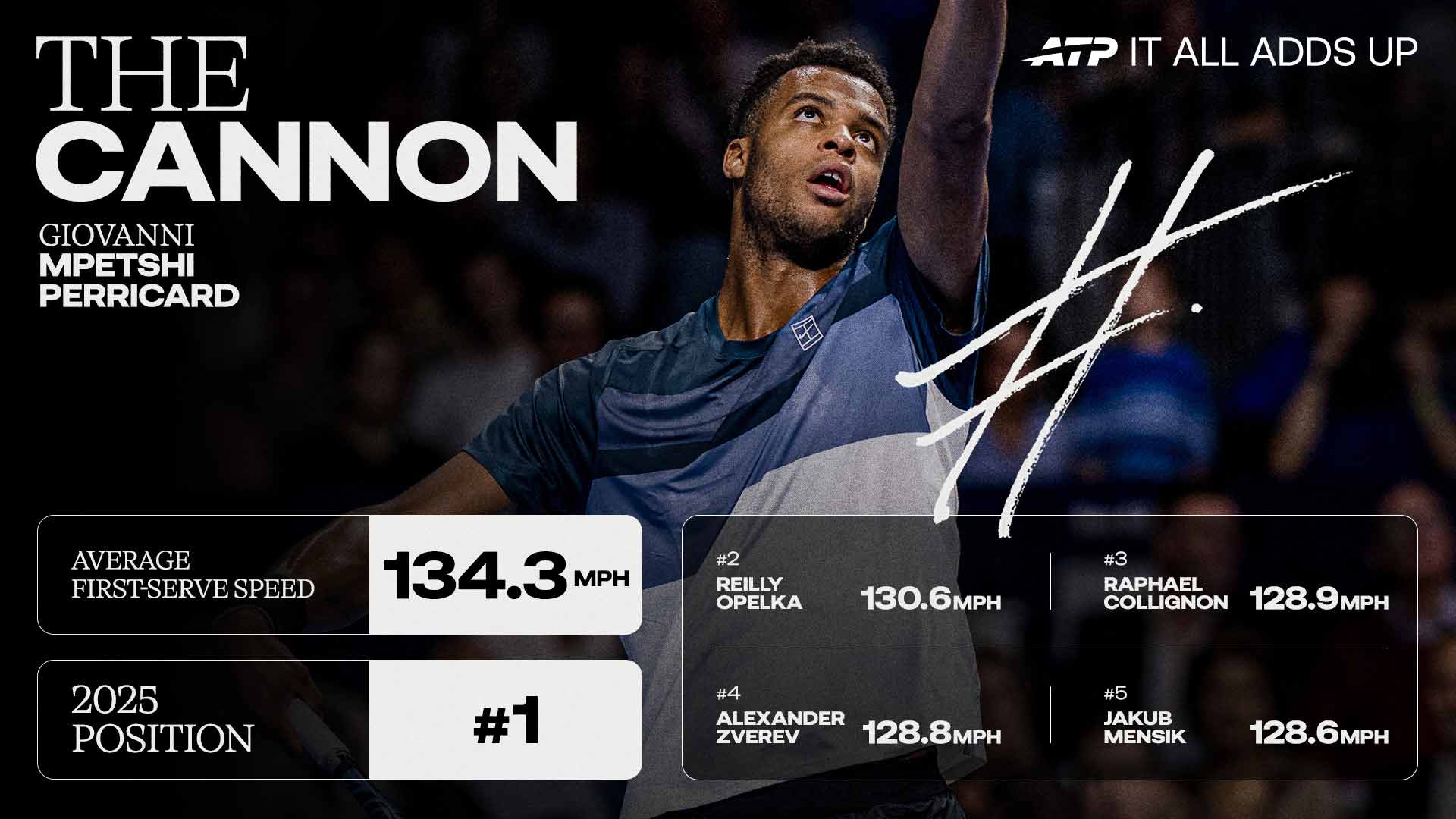Frenchman averaged fastest first and second-serve speed in 2025